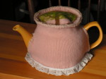 The cozies evolved from my stockings.  I like the idea of having art in everyday life, not hanging aloof on the wall.  The cozies are made of either felted re-purposed wool blankets or cashmere sweaters, with a variety of other re-claimed materials, and needle felted.  Each tea cozy is one of a kind.