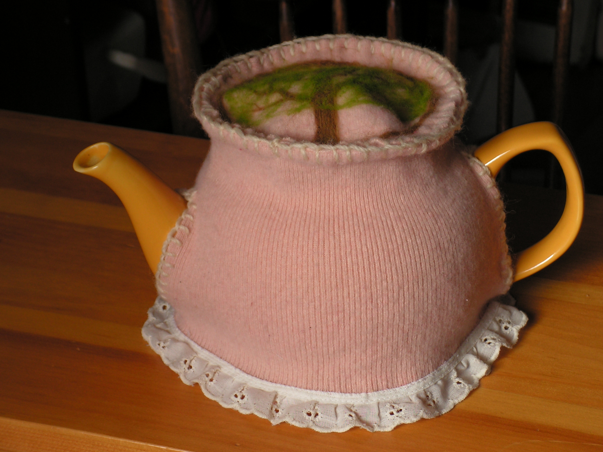 Re-purposed cashmere sweater and eyelet, wool roving and yarn from P.E.I.